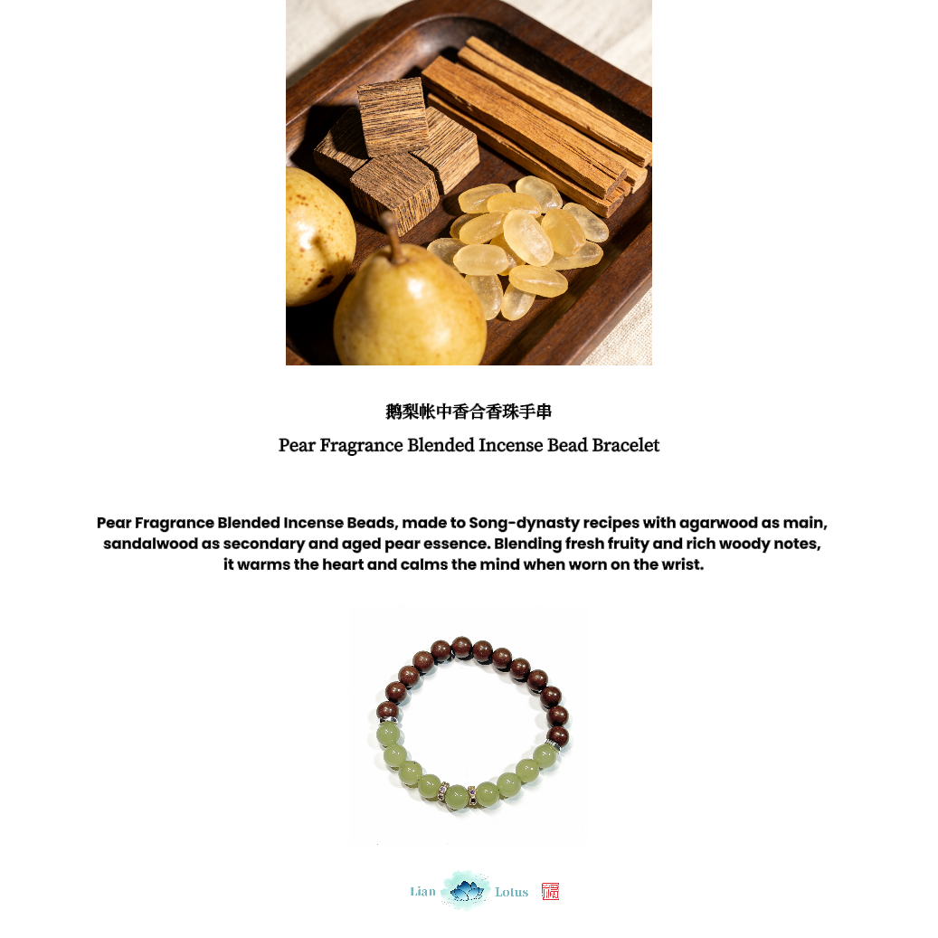 – Product Name: Goose Pear Herbal Blended Incense Bead & Jade Bracelet