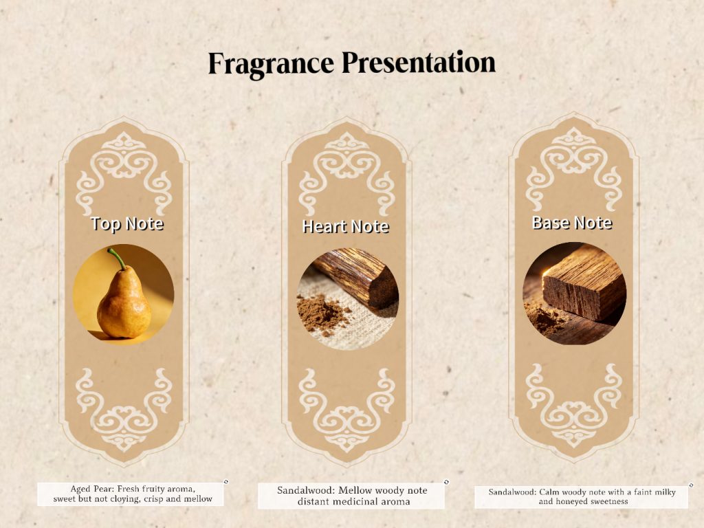 Let the wisdom of ancient oriental aromatherapy surround you – this bracelet is meticulously blended per traditional craftsmanship, integrating natural ingredients like agarwood, sandalwood and goose pear into beads via time-honored incense-making techniques. It features vivid layered scents: top notes of fresh sweet pear, heart notes of warm agarwood and mellow sandalwood weaving an elegant woody aroma, and base notes rounding off with a long-lasting, soft and sweet woody finish.