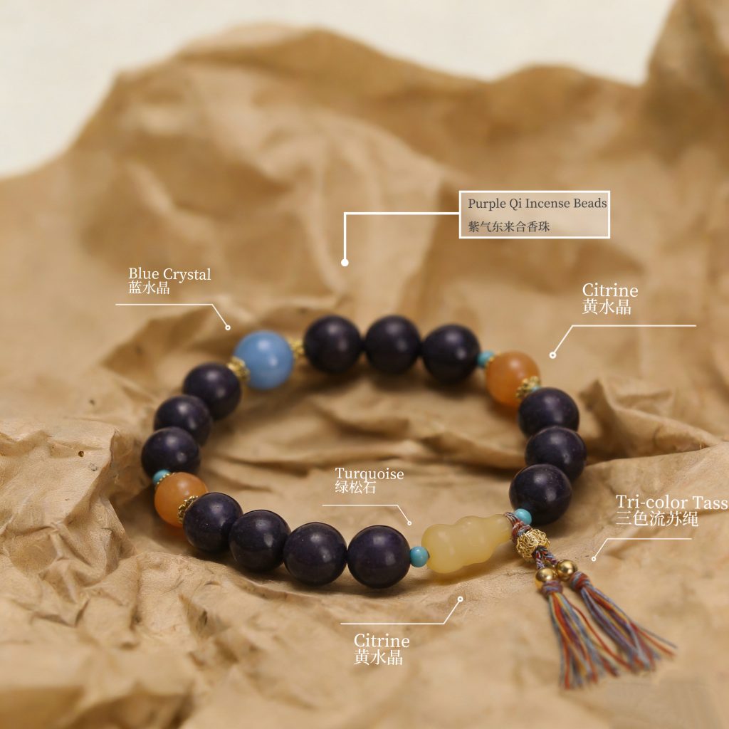 Let the ancient wisdom of Eastern aromatherapy wrap around you—these handcrafted incense beads blend sandalwood, frankincense, lavender and other natural herbs, releasing a subtle, lingering fragrance that speaks to your soul. As the gentle scent dances with your breath, it calms the limbic system, eases stress hormones and melts away anxiety, just like a moment of meditation amid chaos . More than a timeless accessory, it’s your portable wellness ritual: let the warming woody notes ground your mind, floral undertones lift your mood, and herbal essence nurture balance—turning busy days into moments of calm, one breath at a time . Purple Qi symbolizes blessings and tranquility; wear this piece to carry Eastern holistic healing with you, and let every gentle aroma be a reminder to slow down, recharge, and embrace inner peace.